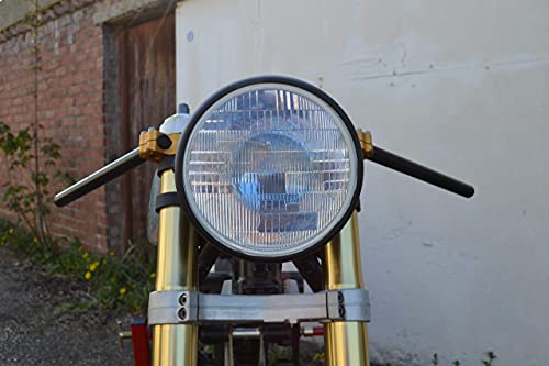 7.7" Nero Opaco Acciaio 12v 55W Fari Moto Custom Progetto Motocicletta Cafe Racer Scrambler- Alta/Anabbaglianti