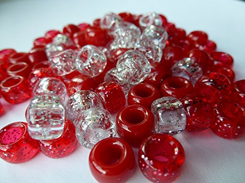 100 x opaco pony perline 9 mm x 6 mm rosso & bianco glitter Sparkle mix Buy 3 Get 1 free. - intreccio bracciali Loom ciuccio clip capelli colore acrilico plastica barile rotondo gioielli