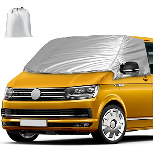 Opaltool Copertura Termica Esterna per Parabrezza per VW Transporter T6, Copri Parabrezza Auto Antigelo di Lusso, Copertura Termica Pieghevole per Parabrezza Argento