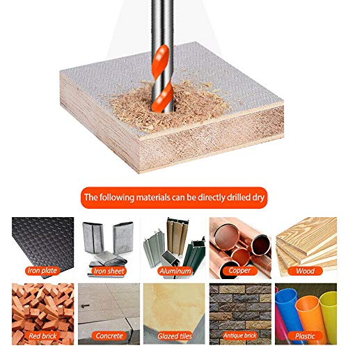 Suggerimenti Caldi: Il set di punte da trapano multimateriale è resistente alle alte temperature a circa 1000 ° C. Tuttavia una lunga sessione di lavoro oltre i 1000 ° C può causare la bruciatura della testa. Pertanto, l'aggiunta di acqua è necessaria quando si fora su materiale ad alta durezza. Queste punte possono essere utilizzate per caricare trapano, trapano a mano, trapano da banco, ecc. Non utilizzare la modalità di impatto di trapano o martelli.