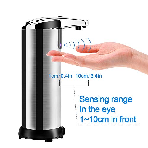 【Touchless e Auto-induzione】Dispenser sapone automatico viene fornito con l' innovativa tecnologia a sensori infrarossi. No Touch, no impronte digitali, bloccando efficacemente infezione batterica. Erogazione Automaticly e lavaggio mani, più igienico e conveniente.