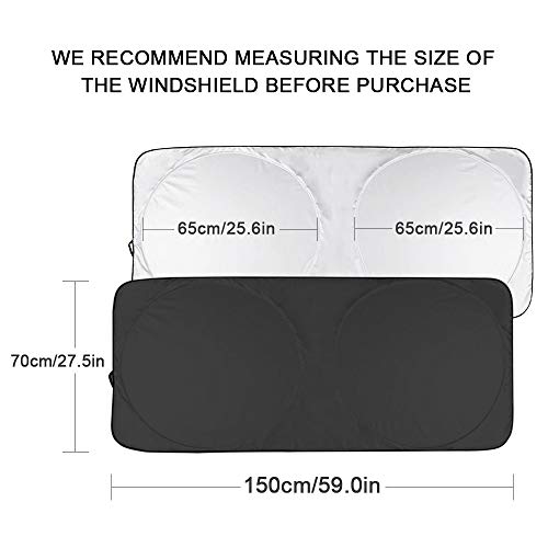 Dimensione - 150 x 70cm. Parasole per auto Adatto per la maggior parte dei veicoli, compresi SUV, camion, furgoni e automobili. Raccomandiamo ai nostri clienti di misurare prima di fare acquisti.