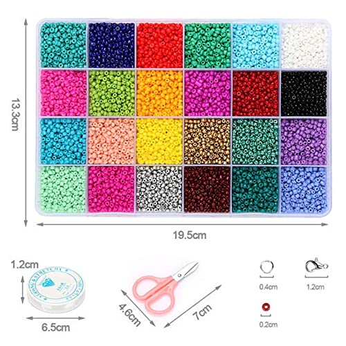Opamoo Perline Vetro, 24000 Pezzi Perline Colorate di 2mm Mini Glass Beads con Scatola Perline Perle di Semi Artigianali per Fai da Te Mini Perle di Braccialetti Collane Bigiotteria 24 Colori