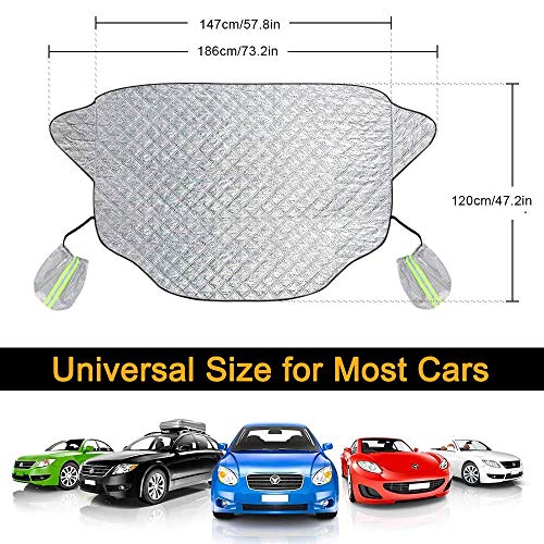 【Dimensione Universale】187 x 95 cm, copertura parabrezza si adatta maggior parte delle auto. Prima di ordinare, si prega gentilmente misurare il parabrezza dell'auto.