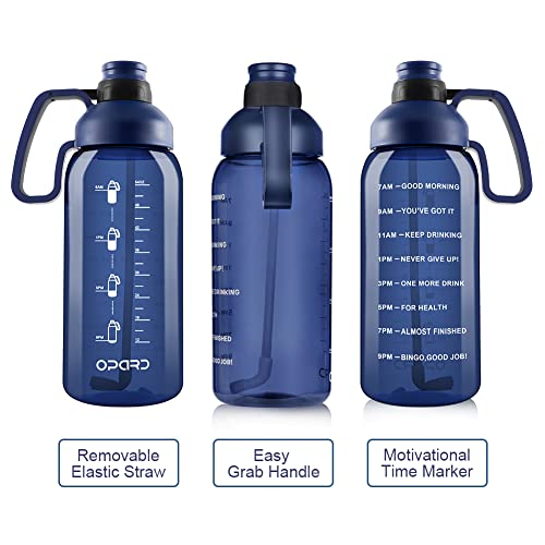 Opard Bottiglia d'acqua da mezzo gallone con indicatore del tempo, 1814 g, grande borraccia sportiva con manico in paglia, senza BPA, per palestra fitness (blu)