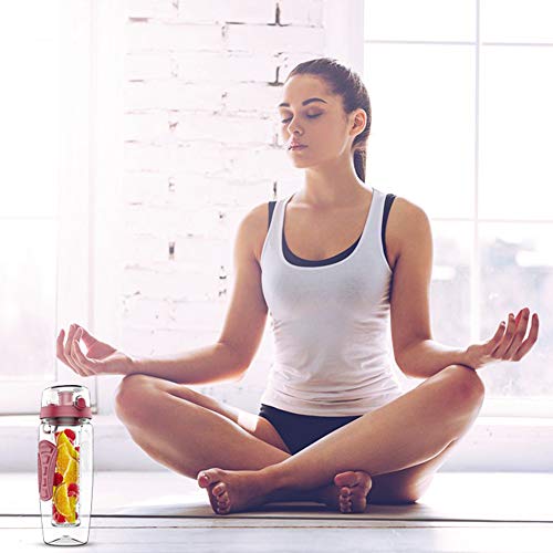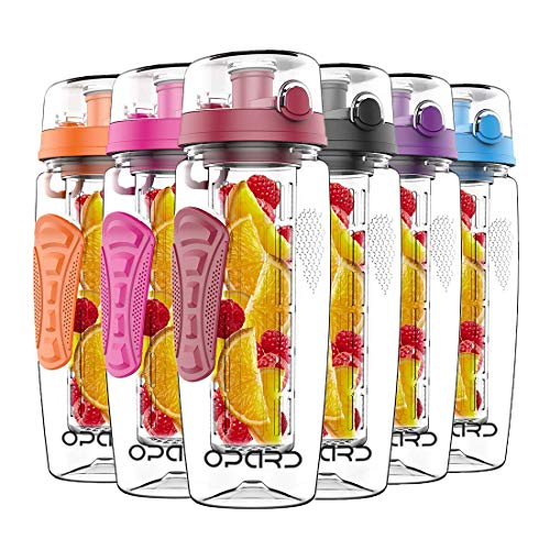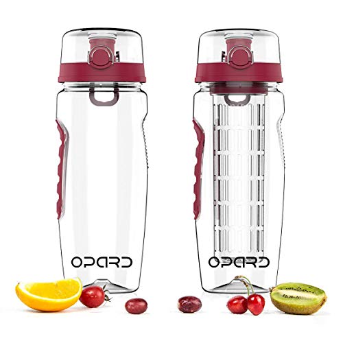 Opard 1L Bottiglie di Bevande a Base di Frutta con idratazione Flip Top e Barra di infusione a Lunghezza Intera e timestamp Senza BPA (Rosso 946ml)