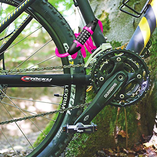 Opaza Lucchetto per Bici, Catena per Bici Alta Sicurezza Lucchetto a 5 Cifre Combinazione Resettabile Cavo di Sicurezza per Bicicletta,Scooters, 1,2 Mx12 mm (Rosa)