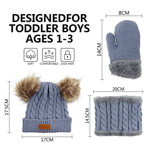 OPEIXSAYKOC Cappello a Maglia Bambini,Invernale Sciarpa Guanti Berretto in Maglia,Beanie Cappello Scaldacollo,Cappello Invernale Berretto in Maglia con Sciarpa per Bambino,Unisex,3-8 Anni (Cenere)