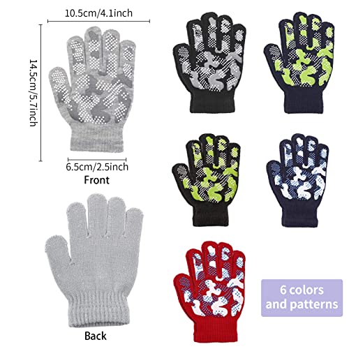 OPEIXSAYKOC 6 Paia Guanti Bambino, Guanti Magici Caldi per Bambini, Full Finger Gloves, Guanti per Ragazzi e Ragazze, Guanti Elastici Caldi Invernali, Unisex Guanti Invernali Bambino (Camuffare)