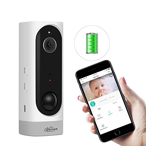 Openuye Videocamera di Sorveglianza, Telecamera di Sicurezza IP Ricaricabile 720P con Batteria Incorporata e Rilevamento del Movimento PIR, Visione Notturna, LED a Infrarossi, Audio Bidirezionale