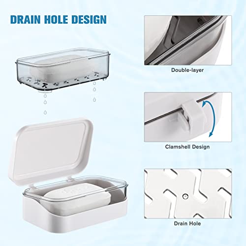 Operitacx Portasapone con coperchio e scolapiatti rimovibile Portasapone portatile da viaggio Portasapone rettangolare (bianco)