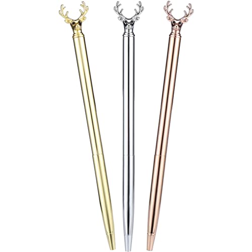 Operitacx 3Pcs Renna Per Metallo Cervo Bambini E Penna Studente Testa Di Scrittura Apprendimento Animale Cancelleria Decorativo Nero Scuola Journaling Creativo Regalo Di Natale Feste
