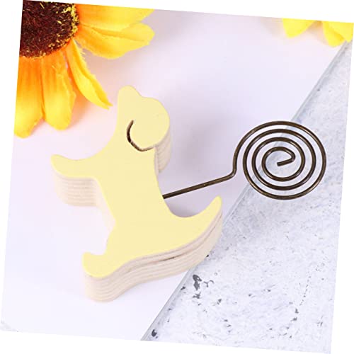Operitacx 10 pz Ufficio Numeri Titolare Cane Figurine Ufficio Memo Clip Business Holder Messaggio Foto Clip di Carta Giallo Legno Legno Porta Biglietti Da Visita Titolare Tabella Nome Titolare