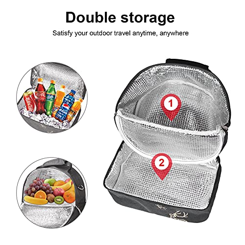 【Grande capacità Con 2 compatibilità e 1 tasca privata】 Ti permettono di posizionare in modo sicuro i tuoi pasti e le bottiglie di bevande nei sacchetti. La fodera in PEVA di alta qualità offre un'eccellente resistenza al calore per mantenere il cibo fresco e caldo e freddo. Abbastanza grande per i prodotti essenziali da picnic di famiglia intera e abbastanza piccolo da non essere ingombrante. La tasca privata sul retro consente di riporre oggetti di valore.