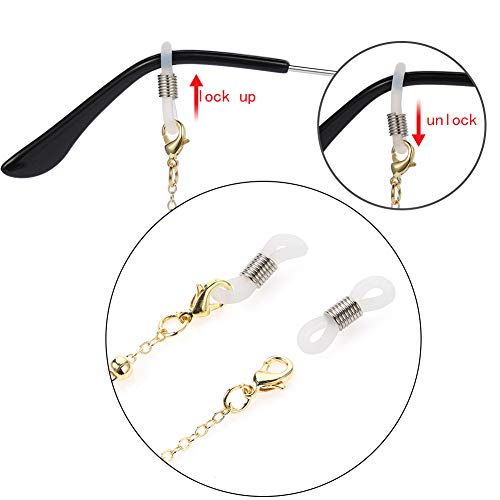 ❀ Catena per Occhiali Regolabile: Estremità in gomma siliconica regolabile con bobine di metallo, basta spostare il pezzo di metallo arrotolato in modo da poterlo tenere saldamente agli occhiali. Si adatta perfettamente alla maggior parte degli occhiali, occhiali da lettura e occhiali da sole.