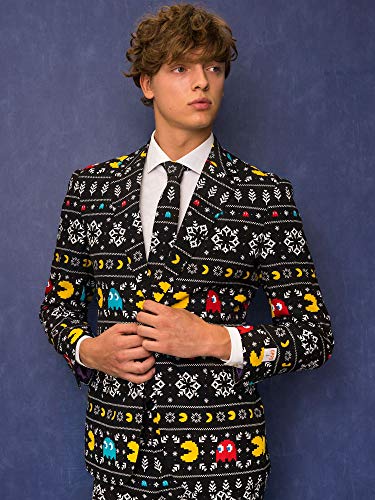 OppoSuits Fun Ugly Christmas Suits for Men - The Rudolph - Full Suit: Jacket, Pants & Tie Abito da Uomo, Winter Pac-Man, 46