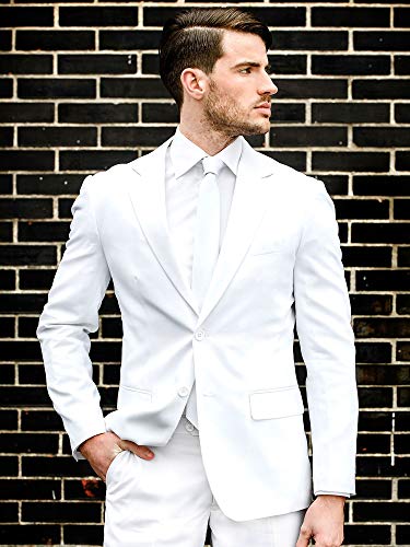 OppoSuits Solid Color Party Suits for Men - White Knight - Full Suit: Includes Pants, Jacket And Tie Abito da Uomo, Cavaliere Bianco, 46