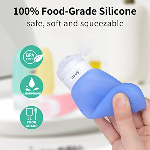 Opret Bottiglie da Viaggio in Silicone, 6 Pezzi Kit Contenitori da Viaggio Flaconi con Custodia per Shampoo, Liquidi and Lozione, Nessun BPA (89ml, 60ml,20ml)