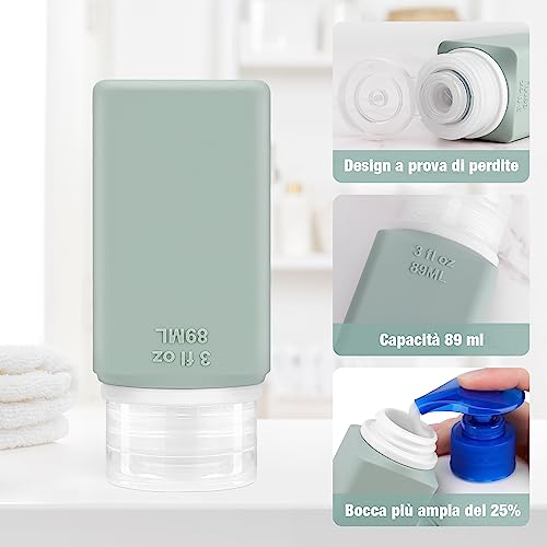 Opret Bottiglie da Viaggio 89ml in Silicone, 4 Pezzi Kit Contenitori da Viaggio Flaconi con Custodia per Shampoo, Liquidi and Lozione, Nessun BPA