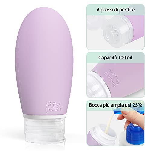【Approvato dalla TSA】 Approvato dalla compagnia aerea per il trasporto. Ogni flacone da viaggio è etichettato con una capacità di 100 ml, possono essere portate a bordo dell'aereo, rispettano la politica TSA.
