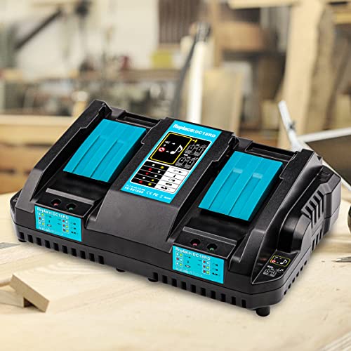 OPSON DC18RD 14,4 V ~ 18 V 4 A Dual Port Caricatore per Makita 14,4 V ~ 18 V batteria agli ioni di litio BL1815 BL1830 BL1840 BL1850 BL1860 BL1430 BL1415