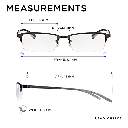 Read Optics Occhiali da lettura da uomo, senza prescrizione, con mezza montatura, occhiali eleganti e confortevoli per l'uso quotidiano, lente 1,0 1,5 2,0 2,5 3,0 3,5