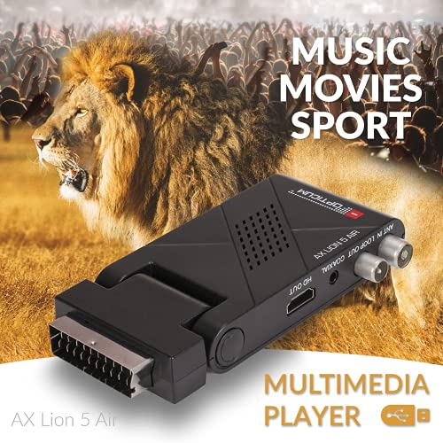 RED OPTICUM AX Lion 5 AIR DVB-T2 H.265 Ricevitore con funzione di registrazione - Sensore IR esterno con display LED - HDMI/SCART - Alimentatore di rete USB 2.0 I 12 V ideale per campeggio