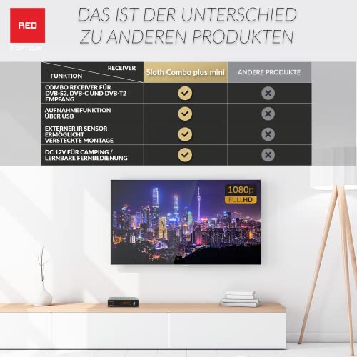 Accurati - goditi la migliore qualità HD con il ricevitore digitale per satelliti - cavo o ricezione terrestre di Red Opticum. Il ricevitore combinato è adatto per la ricezione di tutti i televisori e i programmi radio.