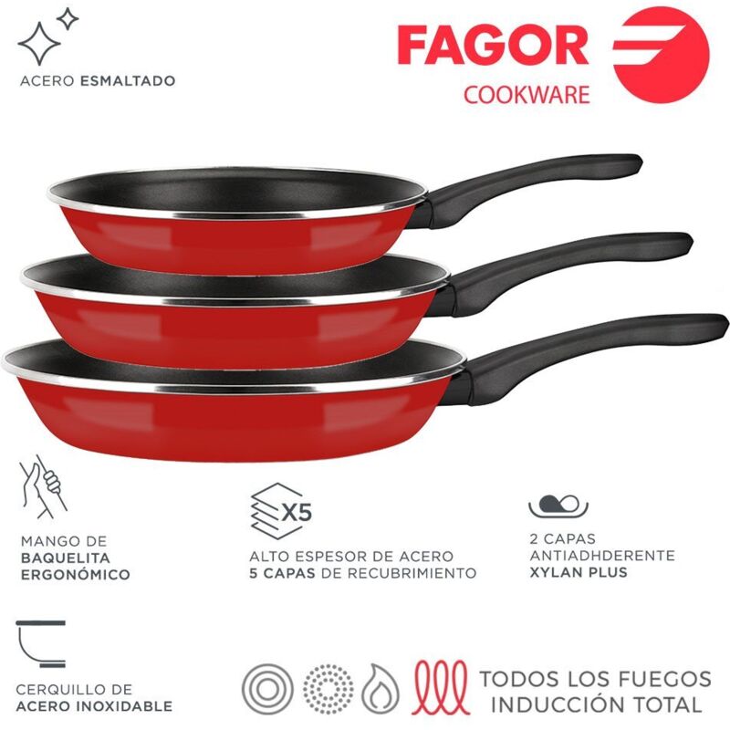 Optimax padella ø20+24+28cm acciaio smaltato 1,5mm antiaderente. Manico ergonomico in bachelite. Antiaderente realizzato senza PFOA. privo di metalli pesanti. facile pulizia. adatto a tutti i tipi di fuoco. piena induzione. fagor Colore: Rosso Marca: Fagor Tipo: Padella Misure: Ø 20 - ø 24 cm - ø 28 cm Tipo antiaderente: 2 strati xylan plus Materiale e spessore: Acciaio smaltato 1 3mm Tipo di base: L'intera base trasmette calore Ideale per: Gas Adatto a tutti i tipi di fuoco: Sì Modello: Optimax EAN: 8429113801366 Produttore: FAGOR Marchio: FAGOR Paese d'origine: ES Peso (kg): 2,804 Riferimento: 78535
