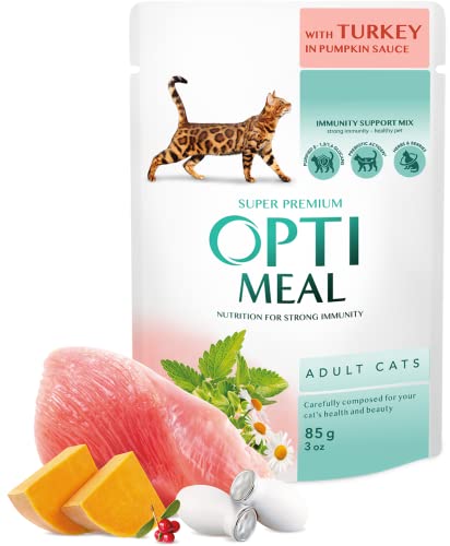 OPTIMEAL Super Premium Cibo umido per gatti - Tacchino in salsa di zucca (12 x 85g)
