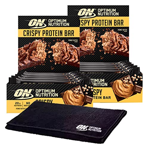 Optimum Nutrition Crispy Protein Bar Barretta Cioccolato al Burro di Arachidi Snack ad Alto Contenuto di Proteine 20 Barrette da 65g + Asciugamano
