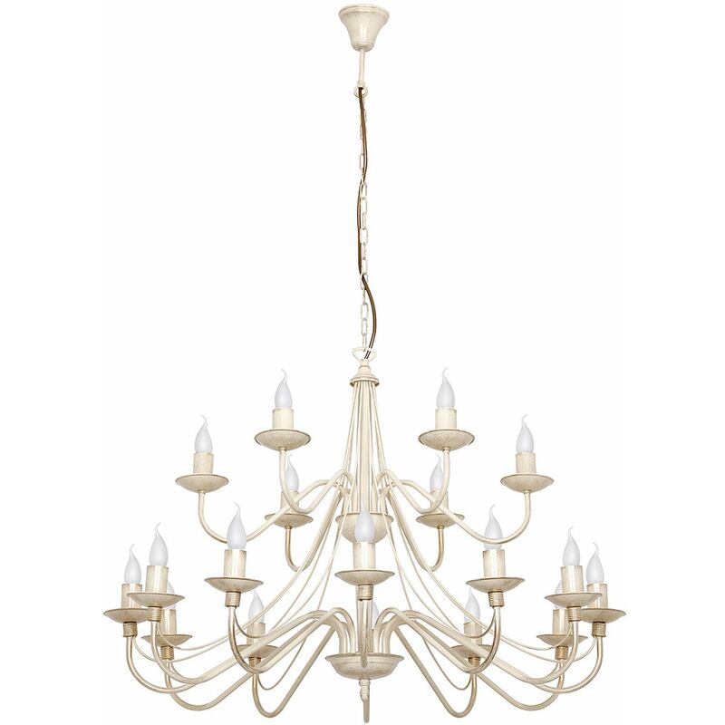 Dettagli del prodotto Materiale: Metallo Dimensioni: larghezza: 850 mm, profondità di sospensione: 1080 mm, lunghezza: 850 mm Attacco: 18x E14 fino a 40W Classe di protezione dagli spruzzi: IP20 Colore: Crema Peso: 6300 grammo Descrizione del prodotto Lucentezza a doppio piano con 18 bracci che attirerà l'attenzione in qualsiasi salotto o sala da pranzo;