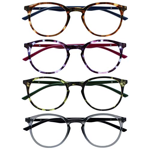 Opulize Met 4 Pacco Occhiali Da Lettura Grande Giro Marrone Porpora Verde Grigio Uomo Donna Cerniere Molla RRRR60-2567 +0,00