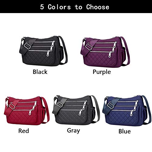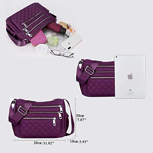 OPXTO Borsa a tracolla da donna in nylon impermeabile multi tasca borsa da viaggio ad alta densità leggera Oxford Messenger Bag, Nero (Nero ), Large