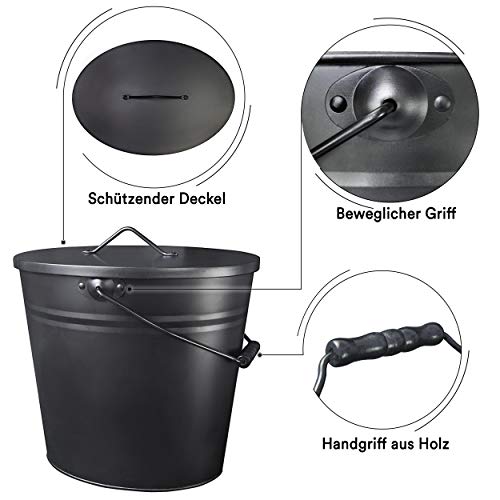 ORA-TEC, secchio per il carbone o le ceneri del caminetto da 15 litri, 24 x 33 x 30,5 cm, con coperchio, in nero opaco