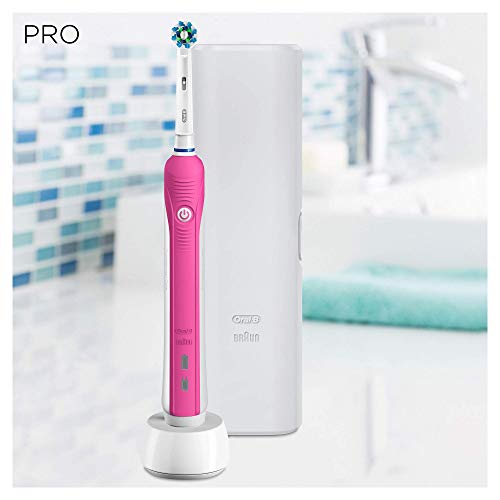 Oral-B Pro 1-750 Spazzolino Elettrico, con Timer Integrato, Sensore di Pressione, 1 Testina, Batteria Litio, Custodia da Viaggio, Idea Regalo, Bianco e Rosa