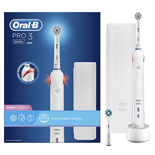 Oral-B Pro 3 Spazzolino elettrico con sensore di pressione intelligente, bianco