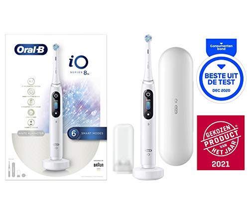 Oral-B iO 8 - Spazzolino elettrico con tecnologia magnetica, microvibrazioni delicate, 6 programmi di pulizia e display a colori, custodia da viaggio, colore: Bianco alabastro