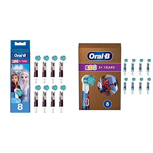 Oral-B Kids Testine di Ricambio con Personaggi Spiderman, Confezione da 8 Pezzi, Adatto per Buca Delle Lettere, 8 Testine & Testine Spazzolino Elettrico Bambini Disney Frozen, 8 Pezzi, Bianco