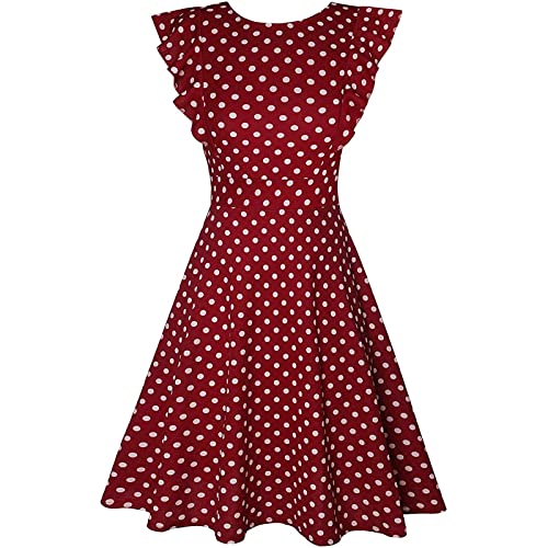 ORANDESIGNE Abiti da Cocktail Corto Donna Elegante Abito da Sposa da Sera Banchetti Abito al Ginocchio Vintage Floreale Vestito Senza Maniche da Ballo Rockabilly Vestito da Festa D Rosso XL