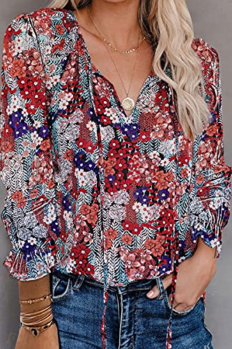 ORANDESIGNE Camicetta Donna Estiva Elegante Bluse Chiffon Scollo V Stampa Tunica Floreale Casual Magliette Boho Chic Top Manica A Pipistrello T-Shirt Hawaiana Spiaggia Sabbiosa Shirt c 06 S