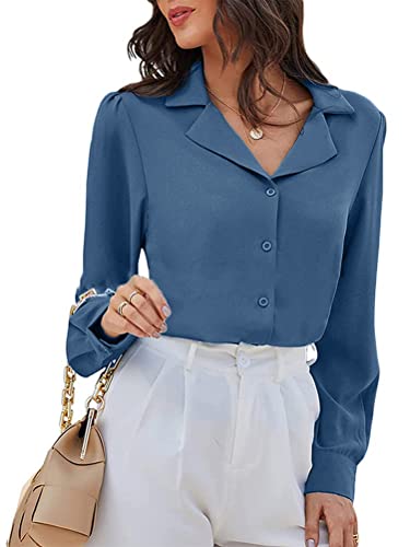 ORANDESIGNE Camicia Donna Casuale Solido Manica Lunga Camicetta V Collo Camicia Bavero Casual Elegante T Shirt Bluse D-Blu Scuro 38