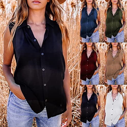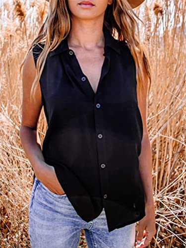 ORANDESIGNE Camicia Donna Senza Maniche Elegante Top Canotta Scollo a V Blusa Estiva Camicetta Curvy Camicie Button Down Casual Tshirt Magliette Mode Chic Shirt Tuniche Nero L