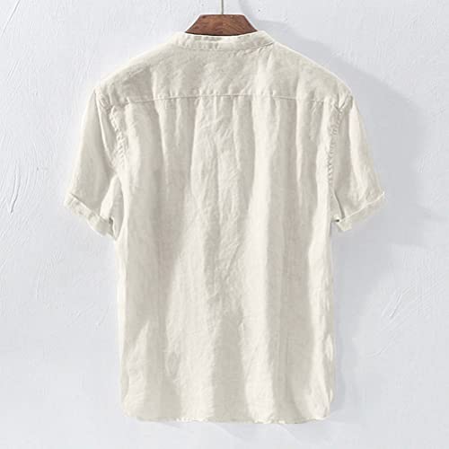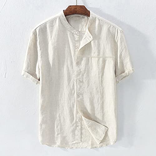 ORANDESIGNE Camicia Uomo Elegante Regular Fit Lino Manica Corta Colletto Camicetta Estate Casual Lino Camicie Button Down Maglietta T-Shirt Moda Vintage Shirt Tuniche A Albicocca XS