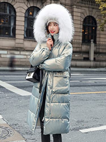 ORANDESIGNE Cappotti da Donna Lunga Giacche Piumino Cappotto Trapuntato Giacca con Cappuccio Imbottito Collo di Pelliccia Invernali Caldo Giacca Lucido Outwear A Verde M