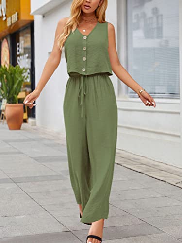 Caratteristiche: Scollo a V senza maniche canotta Con Bottoni + pantaloni donna vita alta comodi, tinta unita, tuta donna completa offerta curvy, ti fanno sembrare alla moda e bella
