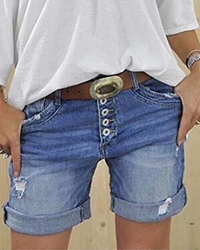 ORANDESIGNE Donna Bermuda in Jeans Signore Vita Alta Buco Denim Pantaloncini Elastici Denim Shorts D Blu 3XL