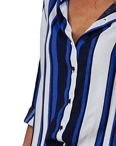 ORANDESIGNE Donna Camicetta Chiffon Blusa Elegante Camicia Manica Lunga Scollo V Camicetta Camicia Bavero Elegante Bluse C Blu Scuro XS