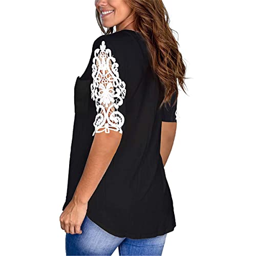 ORANDESIGNE Donna Casual Manica Corta Camicie Tuniche Bluse Camicie Camicetta Top Camicia Elegante Bluse Casual Scollo a V Camicetta Shirts Tops A Nero XXL