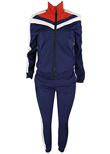 ORANDESIGNE Donna Striscia Tute da Ginnastica Manica Lunga Pullover Cerniera Cappotto + Pantaloni 2 Pezzi Completi Sportivi